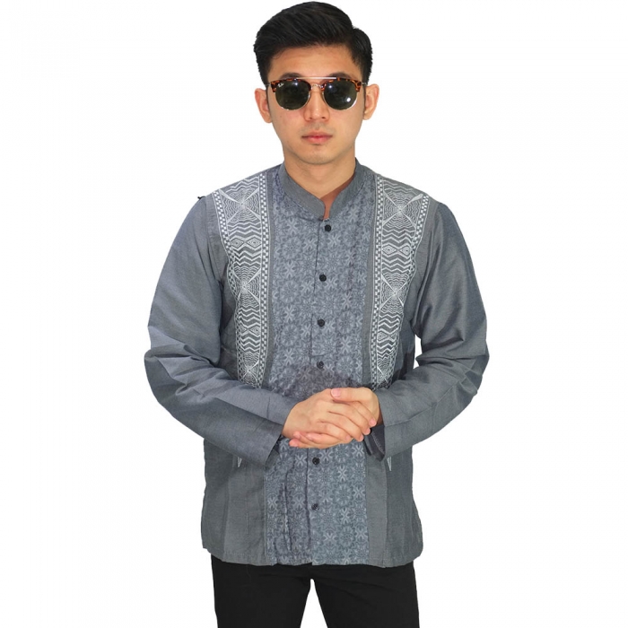 Baju Koko Panjang Elegan Bordir Soft Grey