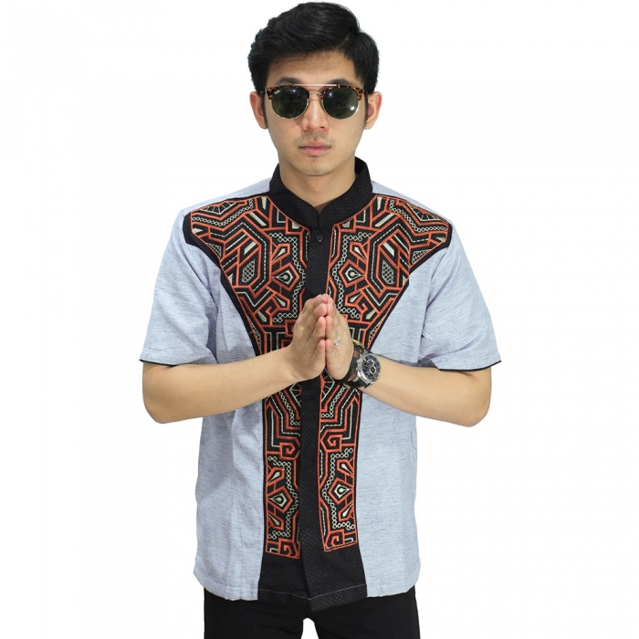 Baju Koko Pendek Bordir Jasko Modern Silver