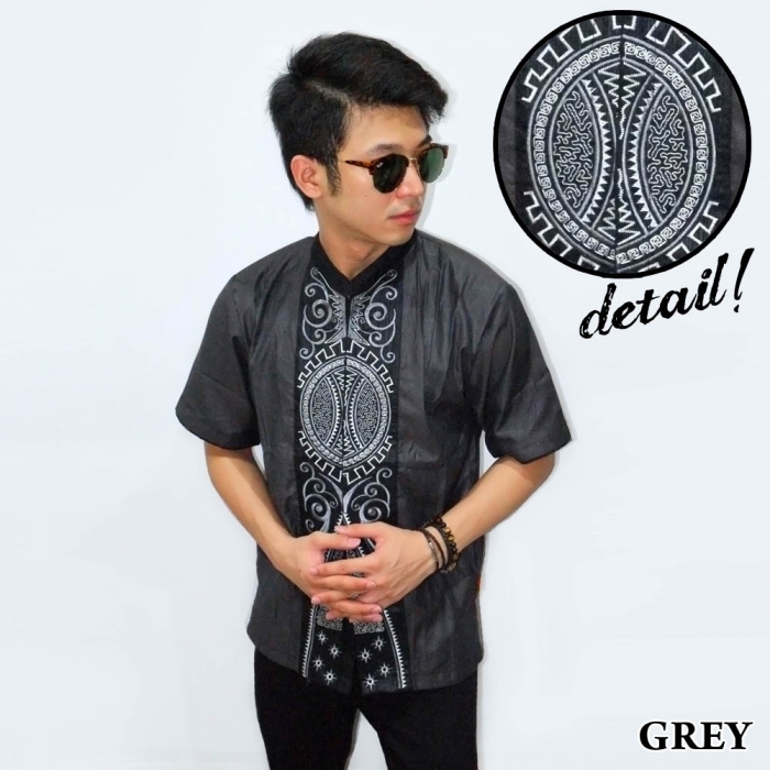 Baju Koko Pendek Bordir Vector Bola Grey