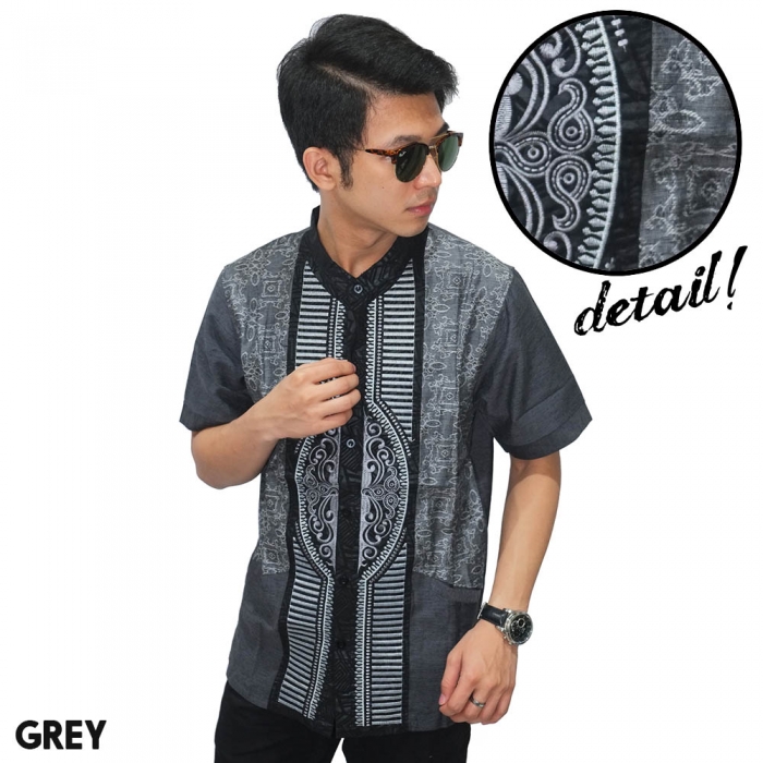 Baju Koko Pendek Modern Bordir Garis Grey
