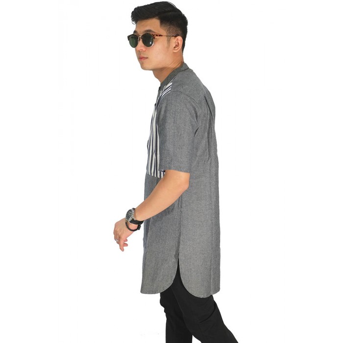 Baju Muslim Kurta Gamis Pendek Kombinasi Stripe