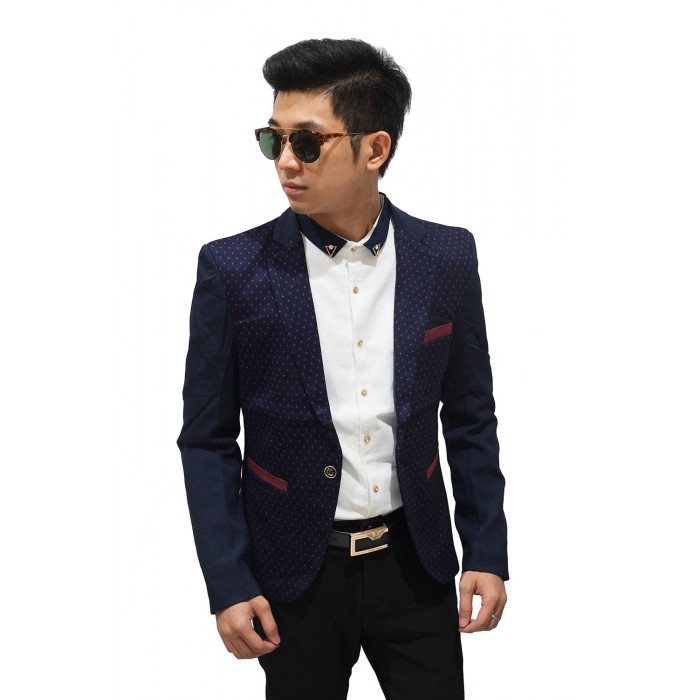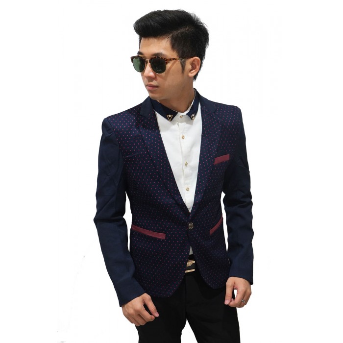 Blazer Casual Navy With Polkadot Maroon