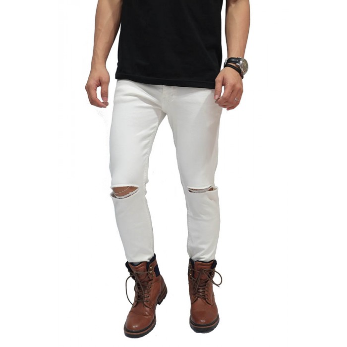 Celana Jeans Ripped On Knee White