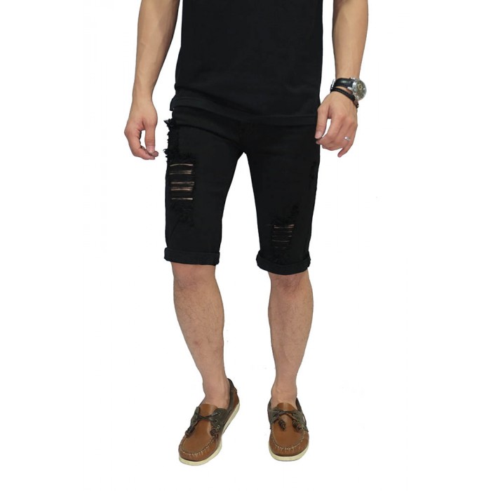 Celana Pendek Denim Ripped Destroyed Black