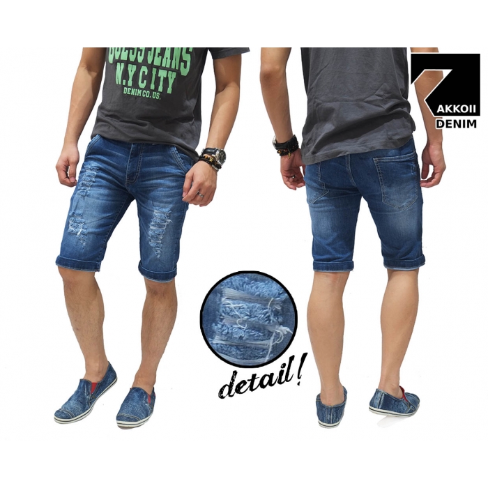 Celana Pendek Jeans 3 Ripped Blue