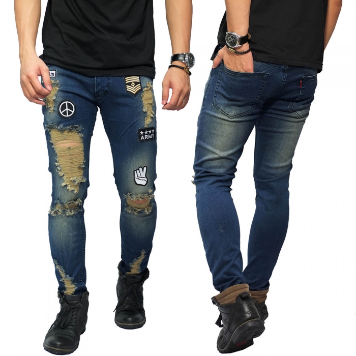 Jeans Frayed Ripped Embroidery Patch Vintage Blue