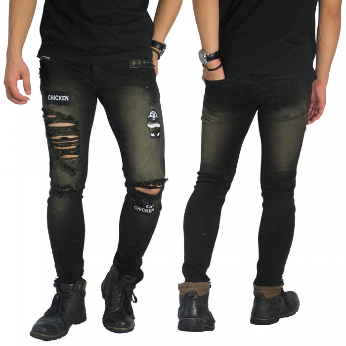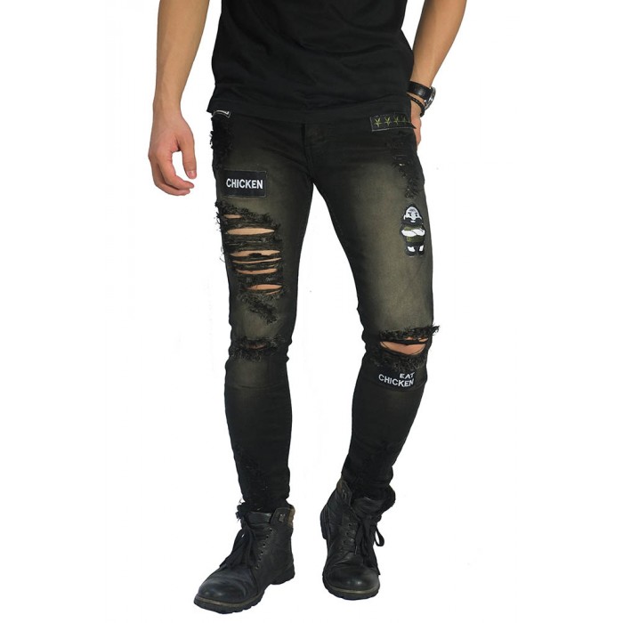 Jeans Frayed Ripped PUBG Eat Chicken Black Washed