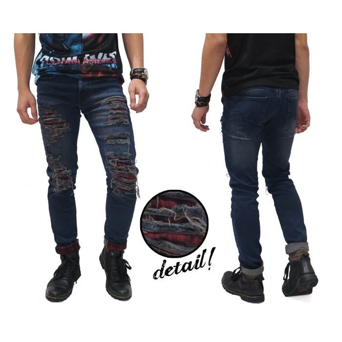 Jeans Ripped Extreme With Patch Kakkoii Dark Indigo