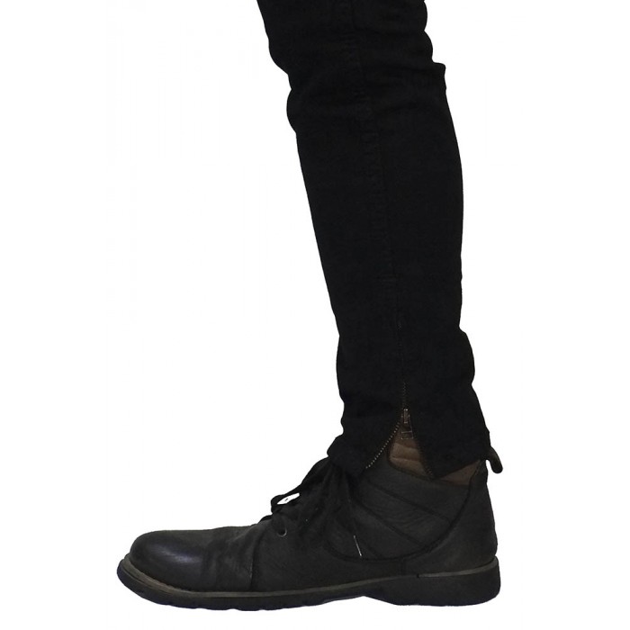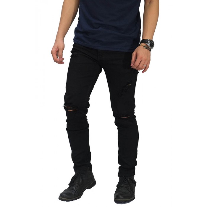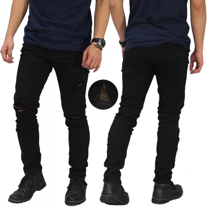 Jeans Thigh And Knee Rips Ankle Zip Black