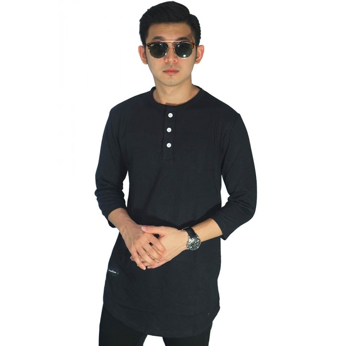 Kaos Henley - Kurta Gamis 3/4 Hitam