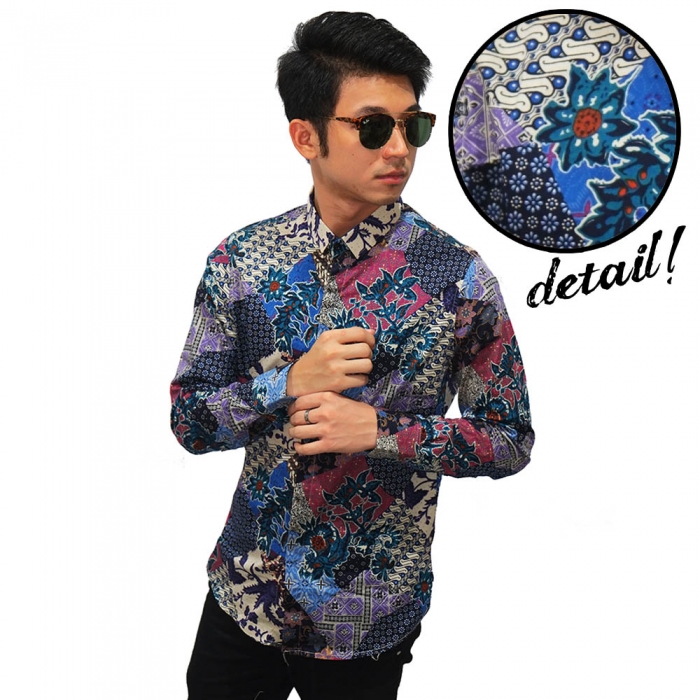 Kemeja Batik Mixed Motif Blue