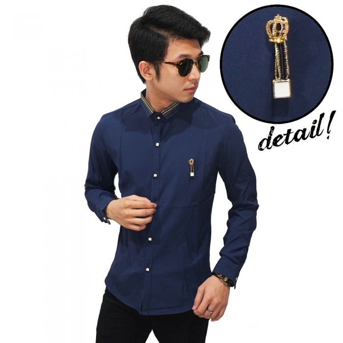 Kemeja Collar Gold Ribbon With Crown Pin Navy