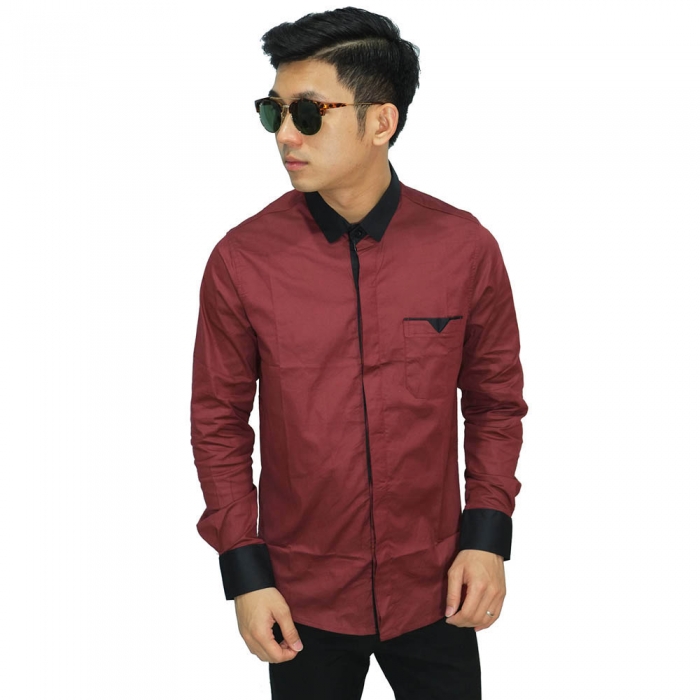 Kemeja Formal Neck Combination Maroon