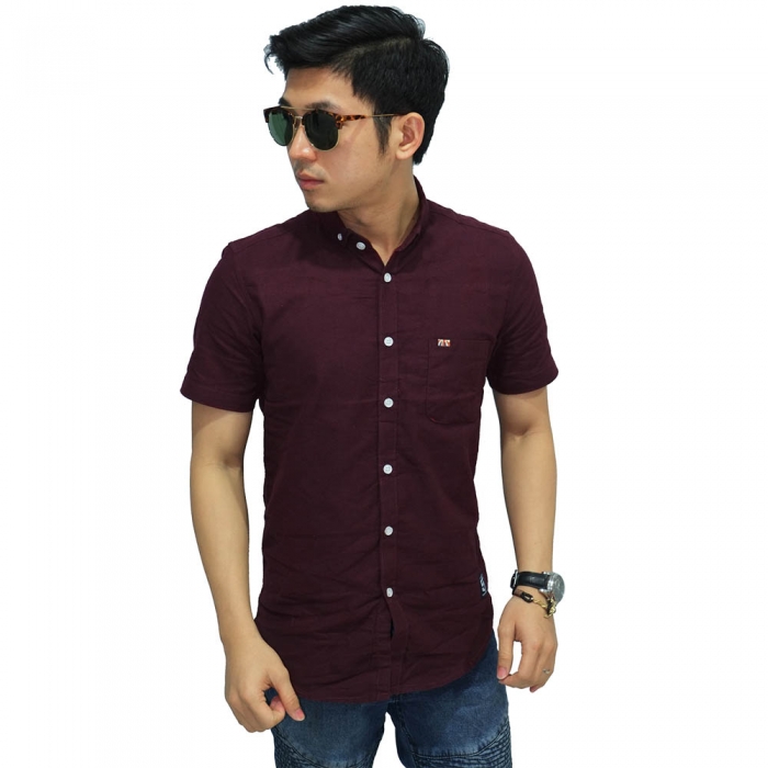 Kemeja Pendek Executive Plain Maroon