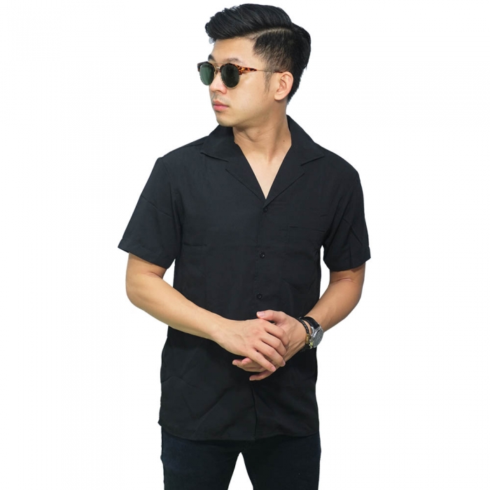 Kemeja Pendek Revere Collar Basic Black