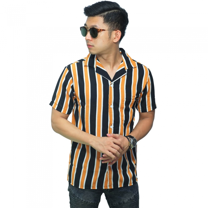 Kemeja Pendek Revere Collar Double Block Stripe Mustard