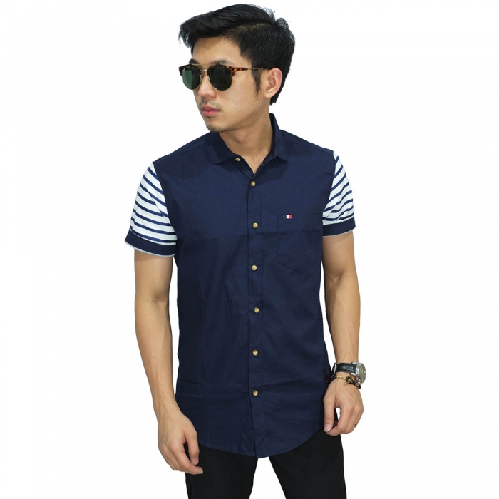Kemeja Pendek Sleeve Stripe Navy
