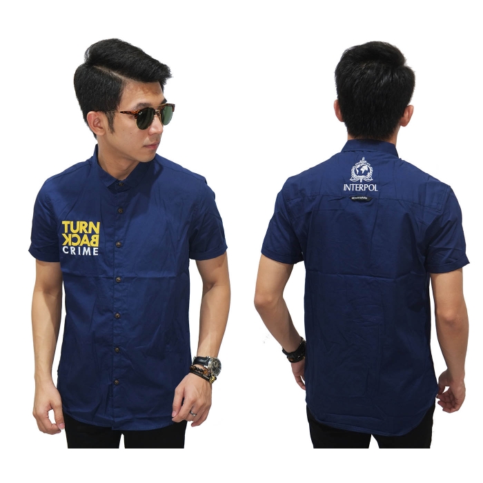 Kemeja Pendek Turn Back Crime Interpol Bordir Navy