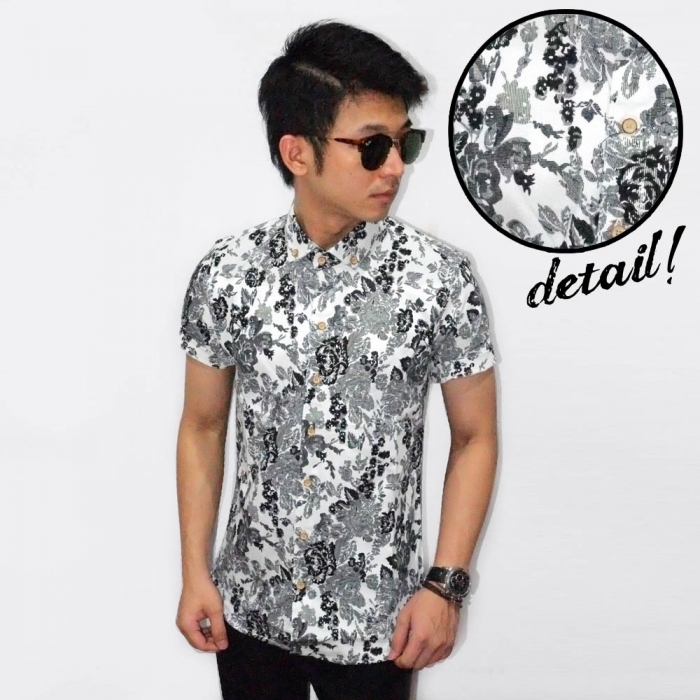 Kemeja Short White Floral Vector
