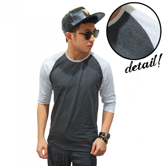 Raglan Mid Sleeve Dark Combine Soft Grey